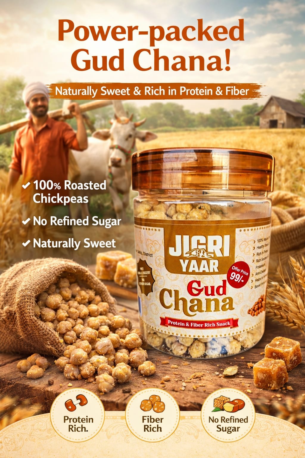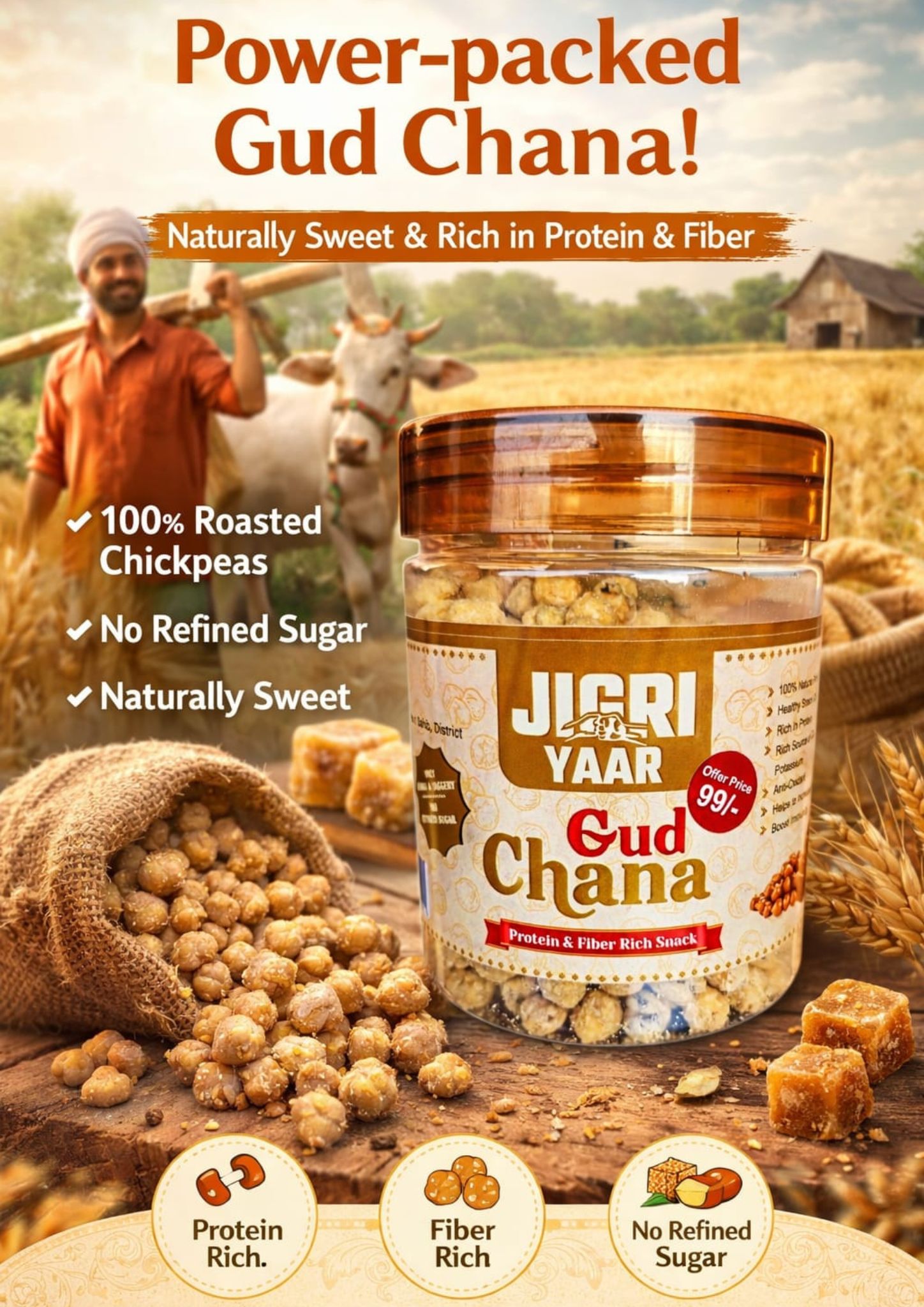 Discover the perfect pairing of natural goodness and nutty delight with Jigri Yaar, where chemical-free jaggery meets high-quality Chana in a match made in heaven.